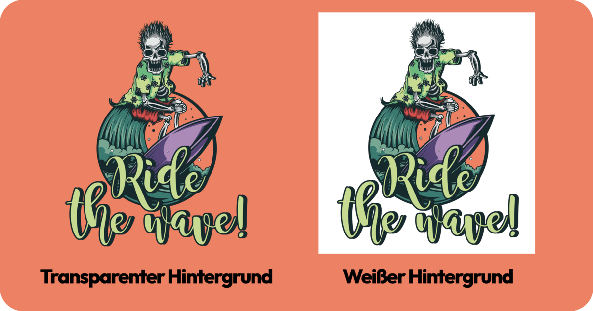 Bitte lade dein Motiv freigestellt (ohne Hintergrund) hoch. Alles, was in deiner Datei sichtbar ist, wird gedruckt, auch weiße oder schwarze Hintergründe.